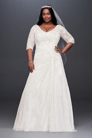 A line wedding dress with sleeves plus size. Davids bridal has beautiful plus size wedding dresses that come in a variety of sizes. We hold plus size wedding dresses with sleeves plus size beaded wedding. Looking for a plus size long sleeve wedding dress. Find a plus size wedding dress that.