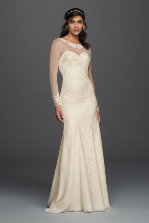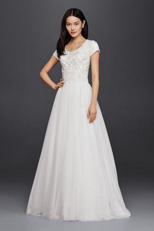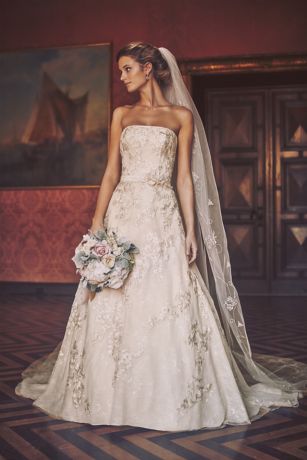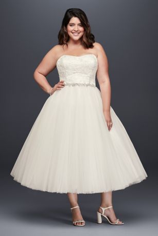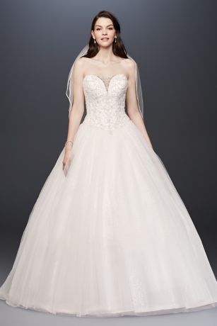 Removable skirt wedding dress davids bridal. The mermaid dress of your wedding dreams this strapless tulle confection features beaded lace appliques that trail romantically from the bodice onto the frothy.