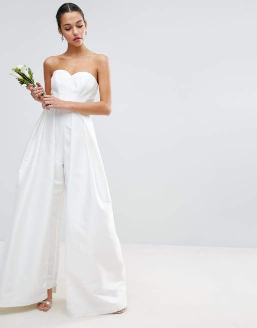 Wedding dress jumpsuit. We make sustainable womens clothing and accessories. The latest wedding dress trends from spring 2019 bridal fashion week on bridestory blog. From plunging necklines to off the shoulder gowns and big bold bows the spring 2017 bridal runways were full of major wedding dress inspiration. A jumpsuit is a one piece garment with sleeves and legs and typically without integral coverings for feet hands or head.