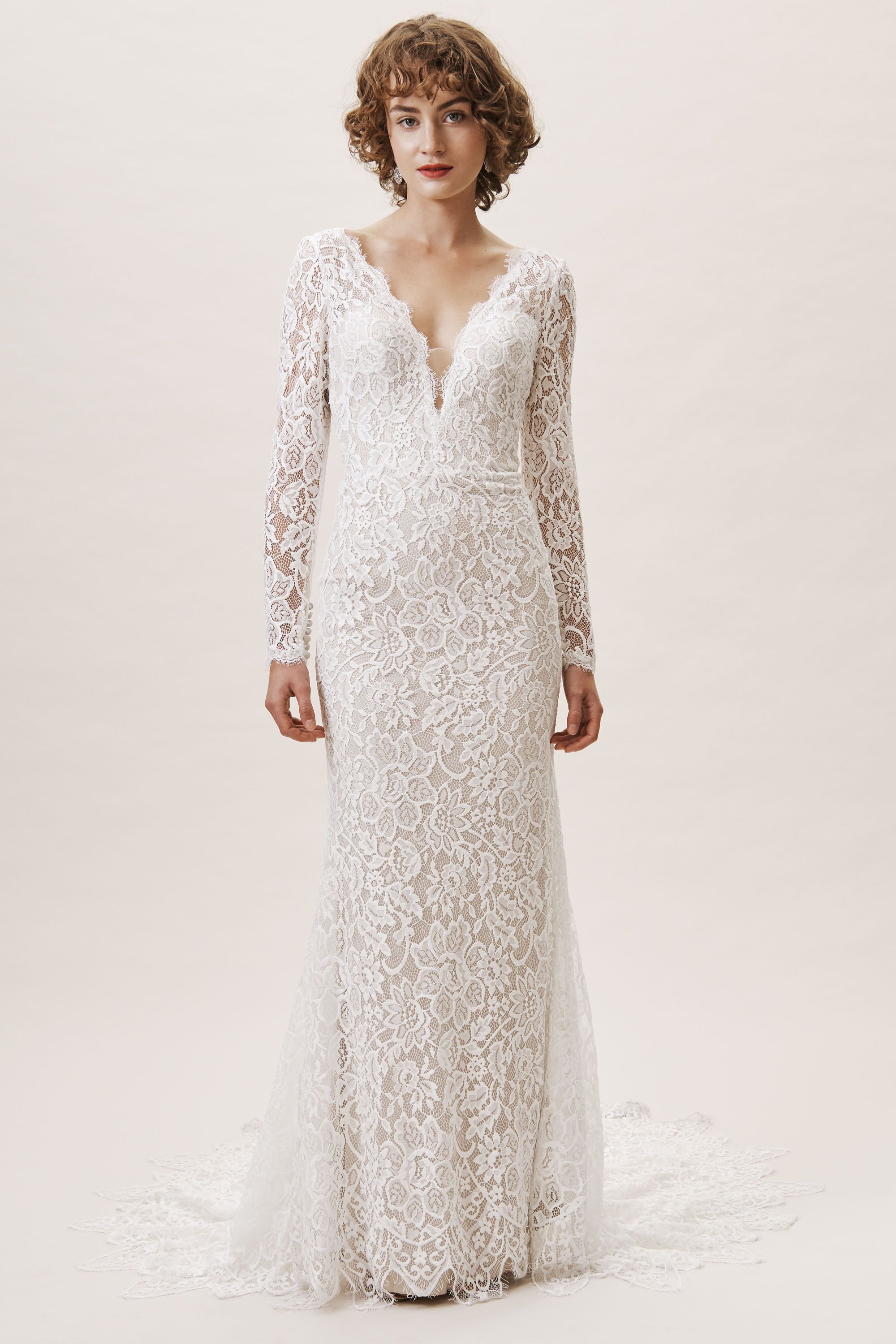 Long sleeve wedding dress.